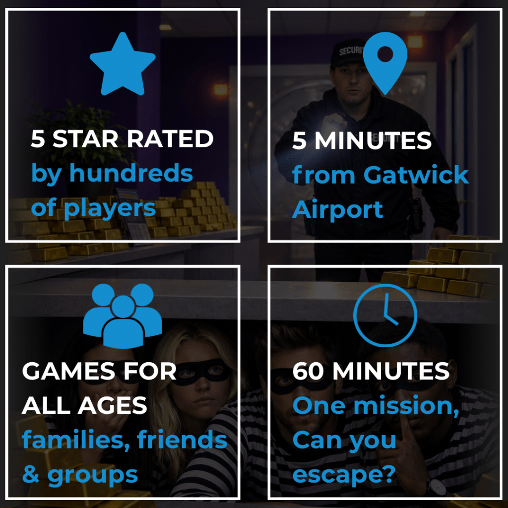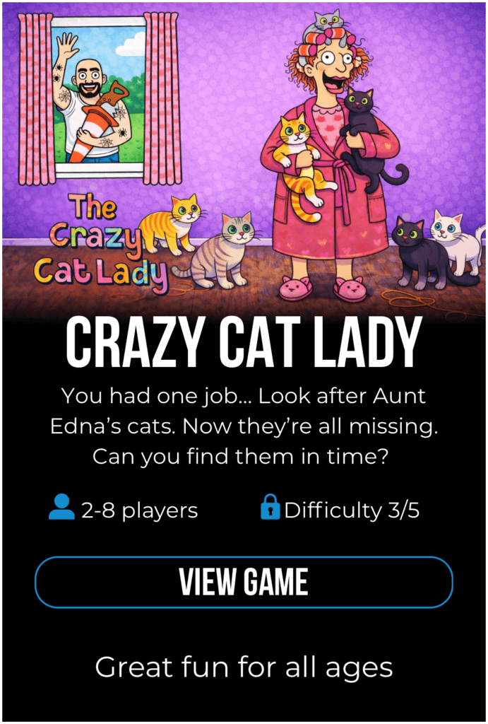 Our ground floor games (Rob the Bank, Crazy Cat Lady, and An Hour To Kill) are wheelchair accessible and suitable for those who require step-free access. Please note that we do not have any accessible toilets.